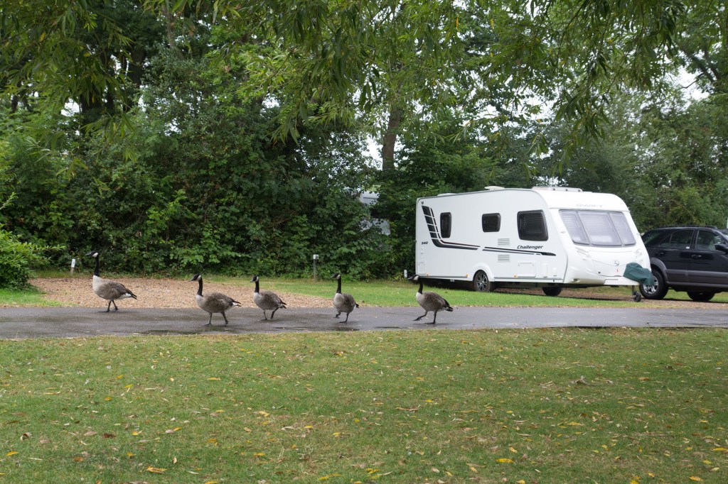 «Salimos de la casita roja y recorremos un camino asfaltado hasta llegar a un lago rodeado por un bosque. Varias caravanas y tiendas de campaña añaden otros toques de color al verde del paisaje. Seguimos por un sendero de gravilla donde, a escasos metros, encontramos una autocaravana grande, de las que parece un camión con la casa a cuestas, como un caracol gigante.»